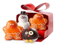 Vegan Gingerman, hecho de masa de berlina Boldú glaseado, y decorado con chocolate blanco vegano navideño. Sin relleno.