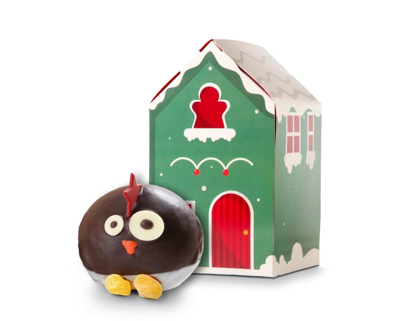 Mr.Penguin del polo sur, hecho de masa de berlina, relleno de nutty y pies de gominola.