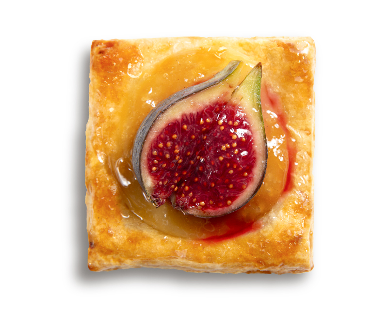 Tartaleta de higos frescos de Alguaire (Lérida) sobre una capa de dulce crema pastelera y base de masa de hojaldre.