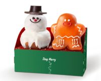 Vegan Gingerman, hecho de masa de berlina Boldú glaseado, y decorado con chocolate blanco vegano navideño. Sin relleno.